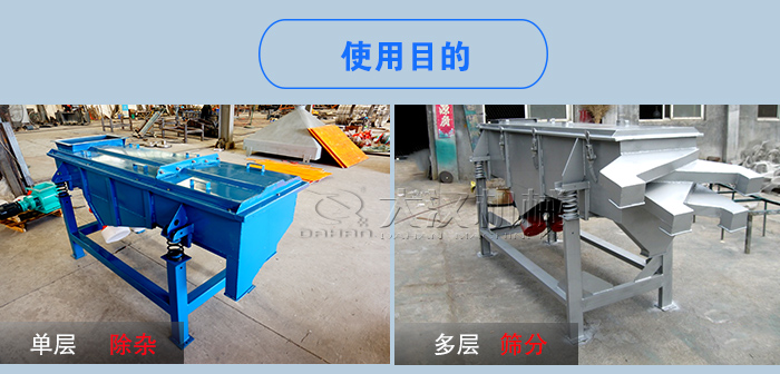 使用振動(dòng)篩的目的也對(duì)選型有著重要的影響,比如是要篩分還是除雜?篩分可以按照用戶要去選擇多層直線振動(dòng)篩,而除雜只需要選擇單層即可。