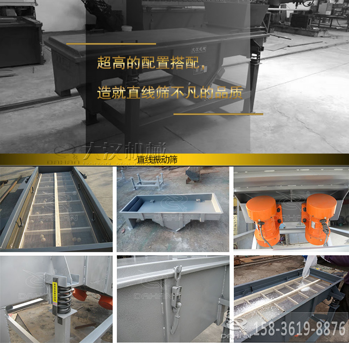 大漢廠家的直線篩可把篩分物料按大小粒度分為2-6個等級,可以篩分400目以內(nèi)的粉狀、顆粒狀物料,篩分精度可以達到96%以上,自動化排料,處理能力高達20t/h,配置靈活,可用于大型生產(chǎn)線。