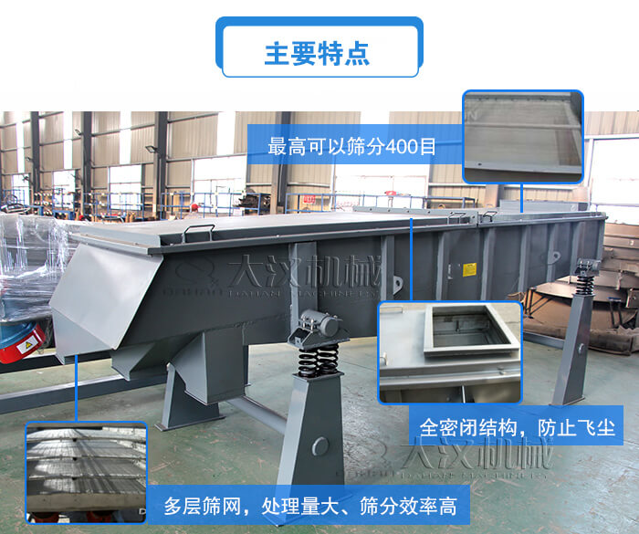 高頻直線振動(dòng)篩,簡稱高頻直線篩,它與普通直線振動(dòng)篩的區(qū)別在于,其振動(dòng)電機(jī)的轉(zhuǎn)速為3000r/min,而正是因?yàn)楦哳l直線振動(dòng)篩的電機(jī)轉(zhuǎn)速高,所以物料能夠接受到更強(qiáng)的激振力,單位時(shí)間內(nèi)處理的物料就越多,而且篩分更徹底,無論在篩分精度方面還是在產(chǎn)量方面都比普通直線振動(dòng)篩高,適用于粒度在0.074—5mm,含水量小于7%,無粘性的各種干式粉狀或顆粒狀物料的篩分。給料粒度不大于10mm。