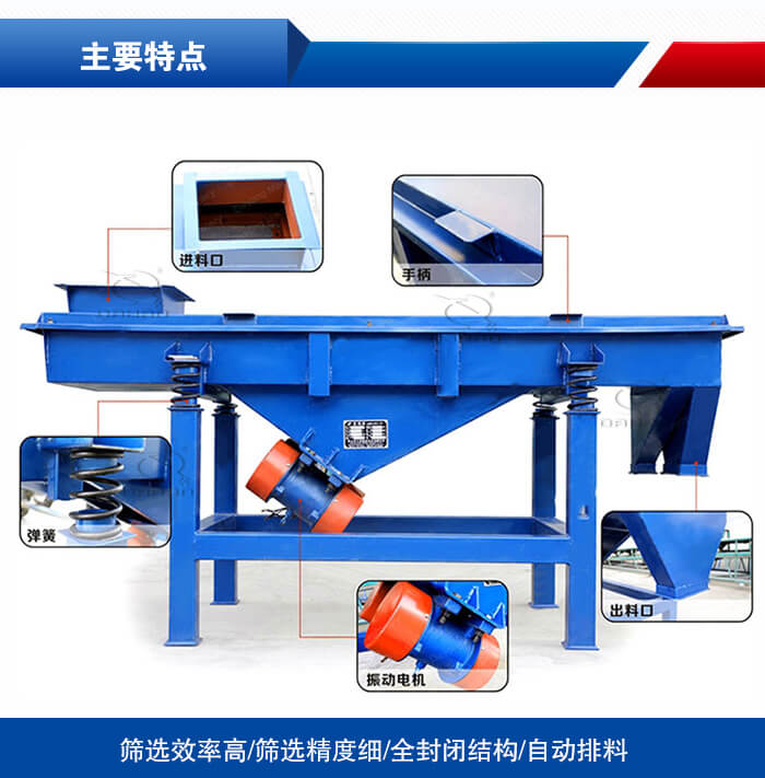 輕型直線振動篩簡稱輕型直線篩,是一種運動軌跡為直線的中、細篩分設備,其材質(zhì)分為多種,如:不銹鋼材質(zhì),碳鋼材質(zhì),全不銹鋼材質(zhì)等,可滿足不同行業(yè)的篩分要求,1至5層篩網(wǎng),能同時進行2至6個等級的分選自動排料,更適合于24小時流水線作業(yè),對于粉狀、顆粒狀的物料均可篩選、分級、除雜,對于固液混合物體可進行粗濾,篩分產(chǎn)量大、效率高,適合流水線作業(yè)。