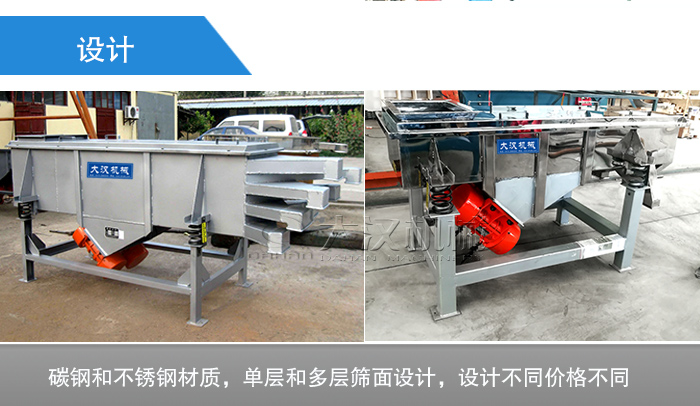 大漢廠家生產(chǎn)的方形振動篩可以按照用戶篩分物料的特性選擇碳鋼和不銹鋼材質(zhì),不銹鋼材質(zhì)的方形振動篩偏貴,但是衛(wèi)生標(biāo)準(zhǔn)高,還可以按照物料篩分等級的多少分為單層和多層篩面設(shè)計,多層方形振動篩耗材多,工藝要求更高,所以價格會比單層振動篩貴。