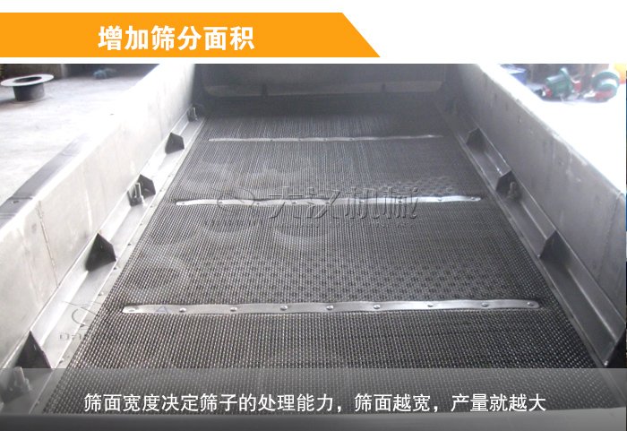 直線振動(dòng)篩的篩分面積可以通過(guò)增加篩面的長(zhǎng)度和寬度來(lái)實(shí)現(xiàn),般情況下,篩面寬度決定篩子的處理能力,篩面越寬,產(chǎn)量就越大;篩面長(zhǎng)度決定篩分效率,篩面越長(zhǎng),物料篩分時(shí)間約長(zhǎng),效率就越高,但是篩面長(zhǎng)度達(dá)到定尺寸后,篩分效率提高很少,甚至不再提高,此時(shí)再增加篩面長(zhǎng)度只會(huì)增加篩子的體積和重量。