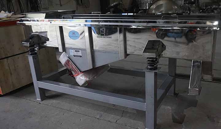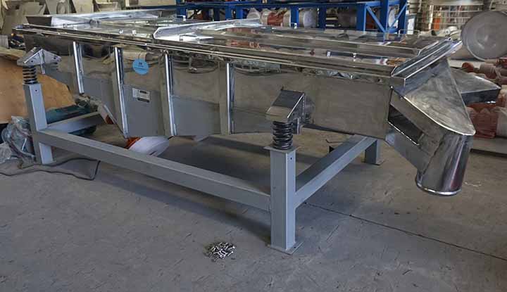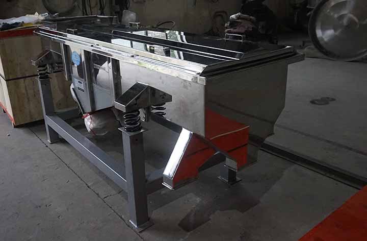 不銹鋼直線振動篩的篩面通常設(shè)計為5°-15° 的微小傾角,通過2-5 層不銹鋼篩網(wǎng)把濕的、易腐蝕的物料篩分為400目以內(nèi)。